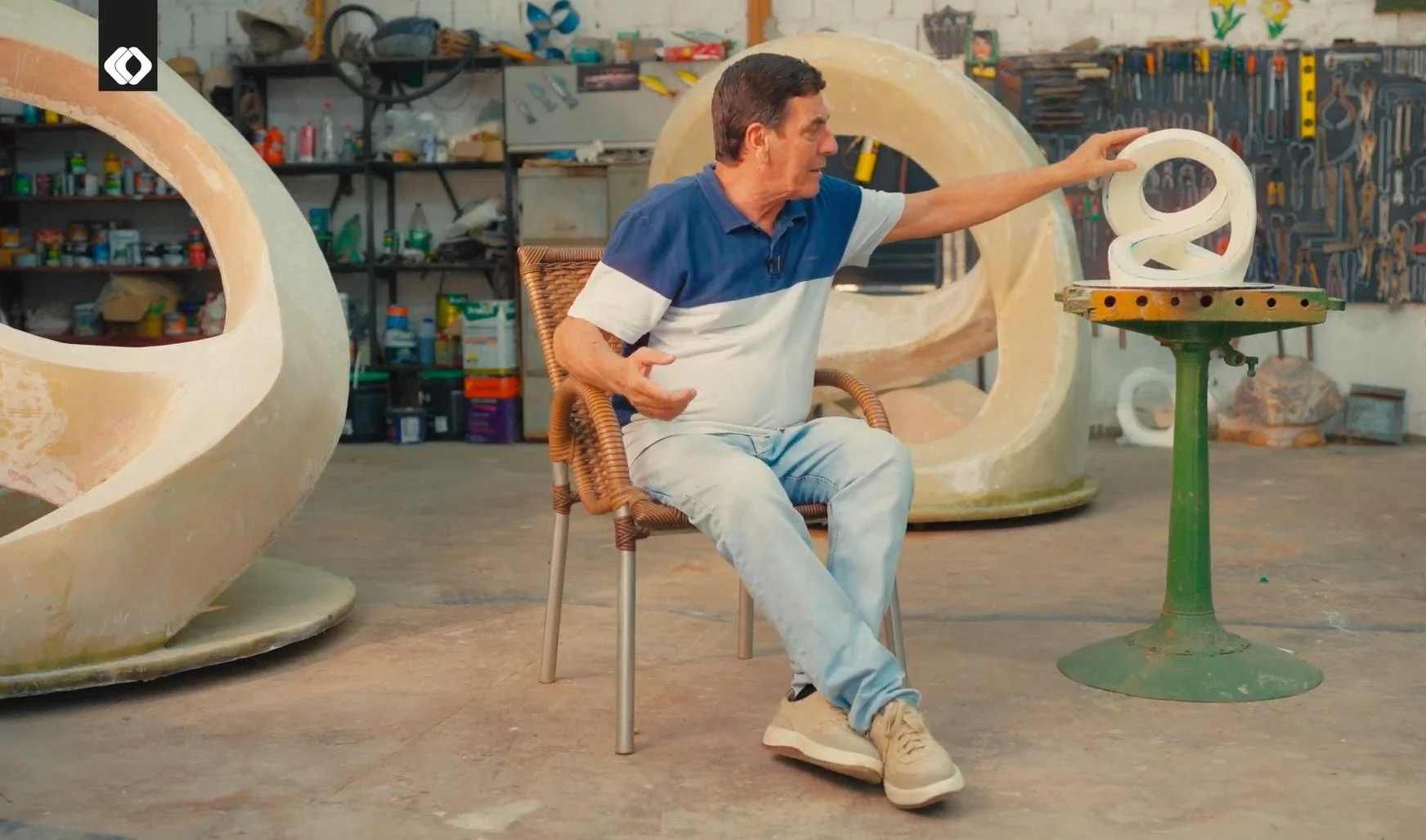 Frede se inspirou no abstrato — estilo que domina com paixão — para traduzir o conceito do Vernissage em formas fluídas e imponentes. O resultado é uma obra única, feita para durar, encantar e dialogar com a arquitetura do projeto e com a cidade.
